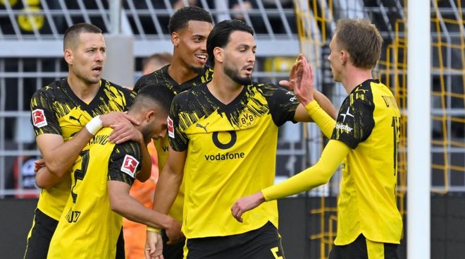 多特蒙德则在主场只拿到一场平局。此役多特蒙德面对的是实力强劲的莱比锡。比赛刚开始7分钟多特蒙德就丢球了。鲍姆加特纳门前推射破门。这样的开局对多特蒙德来说太残酷了。不过,第23分钟多特蒙德就扳平比分。扬-科托在点球点附近抽射破门。此后罗慕洛进球,但因为越位被吹掉。双方都有不少机会,但没能再改写比分。最终的比分定格为1-1!