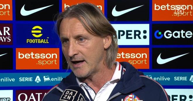“国际米兰难以对抗?我会用合适的词来形容。我们面对的是闯入欧冠决赛的球队,而我们则是从意乙的升级附加赛中走出来的。今天我们无法依靠所有球员,法耶、凡德佩特以及巴比耶里都上场了。国际米兰配得上胜利,对我来说重要的是球队在一个绝对高质量和高身体对抗强度的环境中所拿出的表现,即使我们最终付出了代价。我们需要尽可能保持在比赛中,并努力实践我们在训练中所做的。国际米兰后来的状态有所下滑,而我们则占据了场上主动,并且成功进球,甚至有机会打进第二个。”“这样的比赛对我们的帮助很大,让我们了解自己真实的实力。我们输给了一支非常强大的球队,但我们努力表现出了自己的风格。在比赛构建中,尽管知道我们会面对强大的压迫,我们仍努力建立信心,尝试通过控球来进攻空间。当我们展开进攻时,我们意识到了防守预判的重要性,一些球队有着非常快的进攻速度。”“我最初的想法是让(丹尼斯)约翰森和(佛朗哥)巴斯克斯再加上一名前锋组成攻击线,以尽可能保持在比赛中。今天我们在身体对抗上有所不足,我们的消耗很大。在防守中,国际米兰持续用6名球员进攻我们,我们的中场采取人盯人防守,但总是慢一步。我们需要改进,并且一直在努力。当面对这些强队时,一切都变得更加困难,但我们没有气馁,努力利用我们能做到的。我对进球感到满意。”
