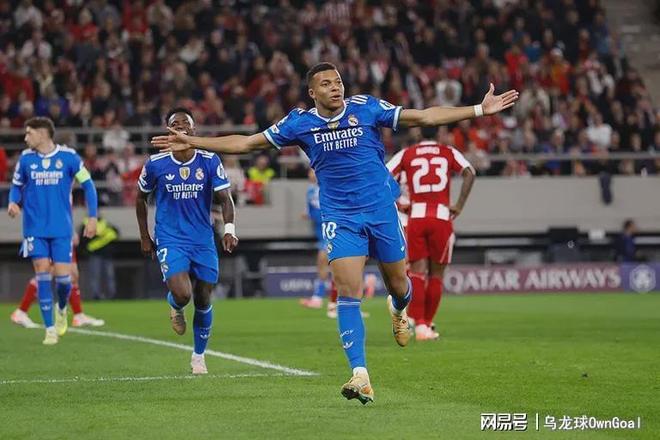 图片第59分钟,维尼修斯助攻姆巴佩破门完成大四喜,皇马4-2奥林匹亚科斯。本场打进4球,姆巴佩的欧冠生涯和皇马生涯首次解锁大四喜,他也成为吉鲁之后,首位在欧冠单场比赛打进4球的法国球员。
