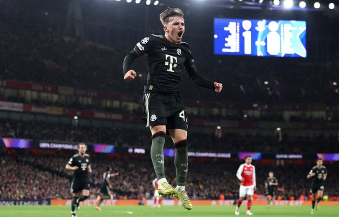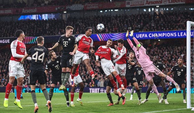 阿森纳首发:1-拉亚、12-廷伯、2-萨利巴、3-莫斯克拉、49-斯凯利、36-苏维门迪、41-赖斯、7-萨卡、10-埃泽、19-特罗萨德、23-梅里诺拜仁首发:1-诺伊尔、2-于帕梅卡诺、4-塔、44-斯坦尼西奇、6-基米希、27-莱默尔、45-帕夫洛维奇、7-格纳布里、9-凯恩、17-奥利塞、42-伦纳特·卡尔开场之后,拜仁控制了比赛局面,控球率保持在75%以上,但创造威胁攻势几乎没有,反观阿森纳的防守反击战术踢得有声有色。