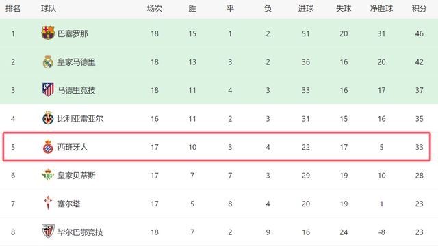 本场过后,西班牙人在西甲已经迎来5连胜,他们是除了巴萨之外,西甲近期状态最好的球队。截至目前,西班牙人继续排名第五,他们只落后第四的比利亚雷亚尔2分,和第三的马竞也只差4分。如果西班牙人继续保持状态,他们甚至有希望竞争前三。接下来,西班牙人将会全力争四,争取拿到一个欧冠席位。事实上,西班牙人只要保住前五名,就有希望晋级欧冠了。上赛季,西甲就拿到了5个欧冠名额,本赛季只要欧战积分排名前二,西甲同样将有5队进入欧冠。进入21世纪之后,西班牙人几次成为西甲“升降机”,如今他们终于开始崛起,希望他们能继续努力,争取杀进欧冠,这将是本赛季西甲最大的奇迹了!