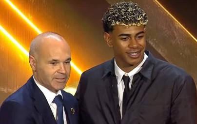 颁奖典礼上,亚马尔获得了2025年度西甲最佳U23球员奖,巴萨传奇伊涅斯塔亲自为亚马尔颁发了奖杯。2025年,亚马尔帮助巴萨拿到了西甲冠军、国王杯冠军和西班牙超级杯冠军。