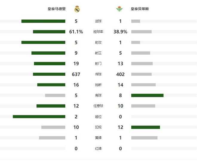 随着主裁判一声哨响,皇马就在伯纳乌漫天的加油声中,朝着皇家贝蒂斯的球门发起了猛攻,第20分钟罗德里戈开出左路底线附近的定位球,后点无人盯防的贡萨洛加西亚头球破门,斩获自己在西甲的首粒进球,帮助皇马取得了1-0的领先。