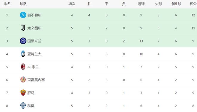 意甲第5轮进行了多场比赛。科莫在主场丢分,和克雷莫内塞踢成1-1!这场比赛科莫率先进球。21岁天才尼科-帕斯在第32分钟就帮助科莫取得领先。下半场巴斯基罗托站了出来,帮助克雷莫内塞扳平比分。之后赫苏斯-罗德里格斯犯规被直接红牌罚下。科莫主教练法布雷加斯最后时刻也吃到红牌。显然,1-1的结果让法布雷加斯很不满意。尤文图斯在主场翻车,艰难战平亚特兰大。这场比赛尤文图斯占据场面的优势,控球率达到67%,创造出来的机会是亚特兰大的两倍,但却只拿到一场平局。苏莱曼突入禁区后低射远角得手。这脚射门让门将无可奈何,只能眼睁睁看着皮球入网。直到第78分钟,尤文图斯才扳平比分。卡瓦尔进球拯救了尤文图斯。随后,德容恩犯规两黄变一红被罚下。但尤文图斯并没能利用人数的优势再进一球。最终的比分定格为1-1!尤文图斯遭遇两连平。国际米兰征服了客场,以2-0完胜卡利亚里。这场比赛国际米兰开局非常顺利,在第9分钟就取得进球。劳塔罗接到巴斯托尼的传中球,头球破门。之后国际米兰基本掌控了局面,压制卡利亚里。直到第82分钟,国际米兰才再进一球。皮奥-埃斯波西托抓住机会推射破门。这粒进球杀死了悬念。国际米兰各项赛事取得一波3连胜。在积分榜上,4战全胜的那不勒斯以12分排名榜首。尤文图斯只拿到1分,总积分是11分,排第2。国际米兰赢球之后,战绩是3胜2负,拿到9分,升到第3名。亚特兰大、AC米兰、克雷莫内塞和罗马都是9个积分,排名第4到第7名。科莫8分排第8。