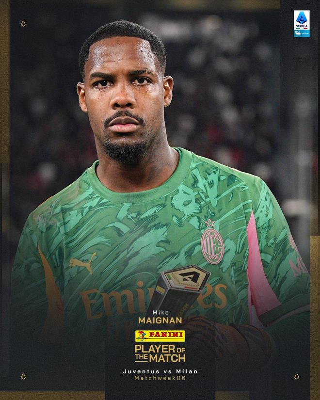 雷速体育10月6日讯 意甲第6轮比赛,尤文0-0战平AC米兰。赛后,意甲官方发布,米兰门将迈尼昂当选本场比赛的最佳球员。此役,迈尼昂首发并打满全场,完成了三次扑救。