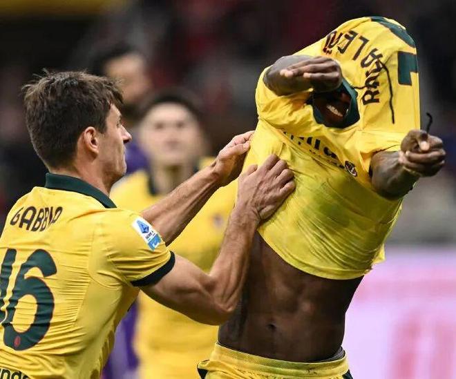 米兰圈意甲第7轮,米兰2-1佛罗伦萨。第86分钟莱奥点球破门助米兰反超,之后他想脱衣庆祝,被加比亚拦截。随后庆祝完,福法纳给莱奥把球衣领子立起来。