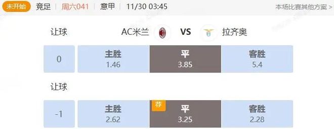 网易红彩今日挑选专家吴永亮和戴永强带来德甲+意甲串关解析,更多精彩方案可下载“网易红彩”App进行查阅!1.专家:吴永亮竞足 周六022 德甲 不来梅VS科隆开赛时间:2025-11-29 22:30:00德甲联赛进行了十一轮,云达不莱梅拿了十五个积分,排在第九位,科隆是少了一个积分,排在第十位。云达不莱梅近三轮主场连续取胜,科隆队客场两连败,近五场正赛,只打赢了一场,相比之下,云达不莱梅显然是有些优势题材,但科隆队战绩不佳,与赛程有关系,科隆本赛季没能拿分的五轮联赛,其中四家目前排在欧战区,另外一个对手门兴,当时是刚刚换了主帅,正好让科隆给赶上了,面对能力相当或者更弱的对手,科隆队的失误不多,其实看科隆队的整体攻防数据,并不算失衡。科隆队的主力前锋阿赫此前有伤,现在已经随队训练,应该可以出场,后卫施密德还在养伤,其余的主力框架基本完整。云达不莱梅本赛季所能取胜的场次,对手中除了柏林联合目前排在前十名以内,其余的几家都排名靠后,算不上强队,云达不莱梅当前总共进了十五个,但是丢了二十个。数据方面,云达不莱梅近期的战绩看起来更好,而且还是处于主场,数据只给到一档高位的让步,并不能体现出优势,所以总体来说,本轮防备云达不莱梅不胜。竞彩选择让球玩法负,预测比分1:1或1:2。2.专家:戴永强竞足 周六041 意甲 AC米兰VS拉齐奥开赛时间:2025-11-30 03:45:00AC米兰21/22赛季才拿过意甲冠军,之后两个赛季也一直保持四强的行列,不过上赛季就突然掉线,只排名第8。本赛季的开局终于是恢复了强队的本色,目前7胜4平1负排名第2,打进18球丢9球,进球不算多失球也不算少,但就是胜在攻守均衡。他们的客场至今还不败3胜3平,主场也不差4胜1平1负,近5个主场是4胜1负,表现还是还是越来越好的。美国国脚普利西奇是球队的进攻引擎,本赛季已贡献5球2助攻,射正率高达66.7%,平均每84.4分钟就能制造一球,刚刚在上轮的米兰德比中打入制胜球,展现了其大场面能力。必须注意的是,拉齐奥近些年在意甲的定位就是中上游,22/23赛季还拿到意甲亚军,但近两个赛季则连续排名第7。本赛季目前5胜3平4负排名第8,跟上赛季差不多的发挥。他们的客场战绩拖了后腿,目前1胜2平3负的表现仅仅排名联赛第16位,只打进3球也只丢了5球,上个客场刚刚0-2不敌国际米兰。总体看他们近6轮3胜2平1负其实就还行。本场拉齐奥的伤缺比较严重,主力前锋坎切列里(3球)因肌肉受伤将缺席。后防线上,吉戈和巴什鲁也无法出战。数据方面初始给到主让0.75的数据支撑面,后市变化不大。AC米兰的表现无疑是更加稳定的存在,特别是主场的表现,面对基本不会打客场的拉齐奥,AC米兰应该能打平或一球小胜。竞彩选择平+让球平,预测比分2:1或1:0。