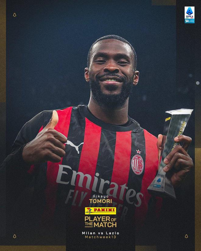 意甲第13轮主场迎战拉齐奥的比赛中,托莫里代表米兰首发并打满全场,这位英格兰后卫不仅贡献了全场最多的6次抢断,同时还在下半场助攻莱奥打进了全场比赛的唯一进球,从而帮助米兰1-0击败拉齐奥。最终,凭借自己在本场比赛当中的决定性表现,托莫里成功当选了全场最佳球员。