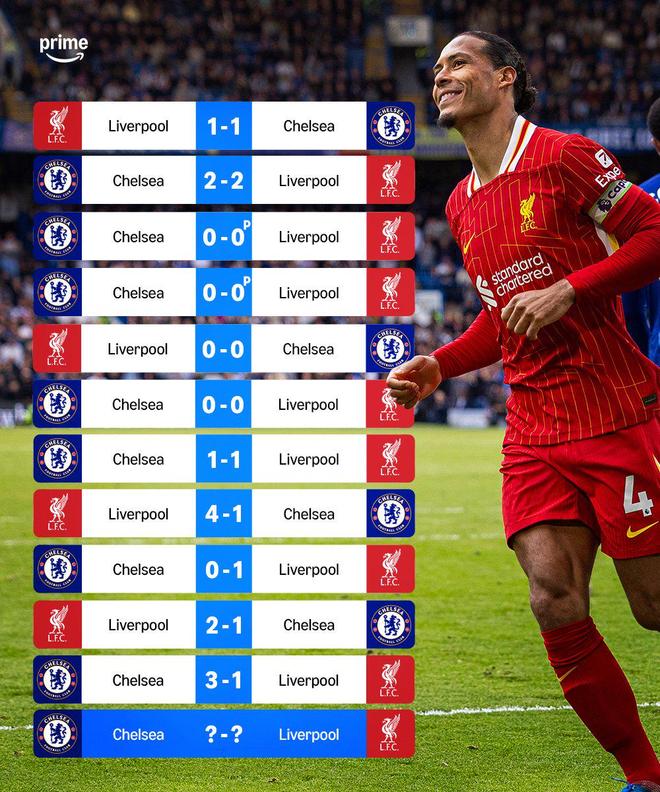 英超 利物浦4-1切尔西2024年2月25日 英联杯 切尔西0-0利物浦(加时赛0-1)2024年10月20日