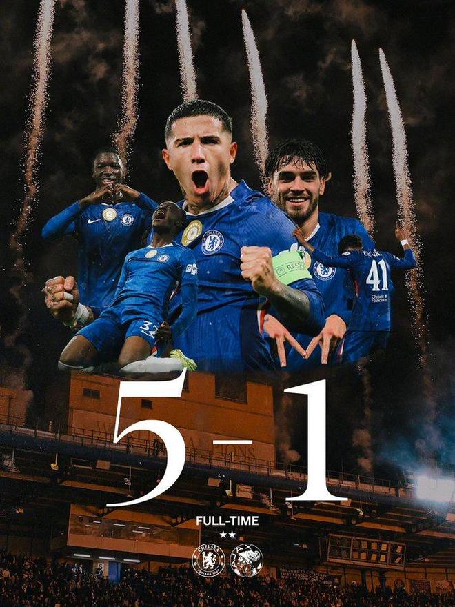 欧冠联赛阶段第3轮,切尔西坐镇斯坦福桥球场5比1大胜阿贾克斯,不过这场比赛的上半场,阿贾克斯队长泰勒在第17分钟吃红牌离场,客队的压力增加。切尔西在第18分钟先拔头筹,半场4比1领先对手,下半场再下一城,部分主力也得到了休息的时间,可以备战随后联赛对阵桑德兰和联赛杯对阵狼队的比赛。吉乌和凯塞多先后进球,客队的韦霍斯特罚进一粒点球,但是也送出一粒点球,可谓是功过皆存。恩佐和埃斯特旺也都是点射建功,所以这场比赛的上半场也被认为是点球大战。下半场,乔治替补建功其实是意外之喜,蓝军想三线作战均取胜对手必须给替补球员们一些表现的机会。本场比赛后,切尔西各项赛事取得4连胜也是可喜可贺,也可以说球队在主帅的带领和不断应变的过程中完成了磨合,进攻效率也大幅度提升。这四场比赛的比分分别是欧冠1比0本菲卡,英超2比1利物浦,3比0诺丁汉森林,本轮5比1阿贾克斯。