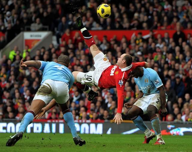 从埃弗顿出道,在曼联成名,鲁尼是英格兰足球史上最有名气的巨星之一。效力曼联13个赛季,鲁尼出场559次,打进253球。小胖的曼联253球中,有1球堪称旷世之作:2011年2月的曼市德比,曼联2-1战胜曼城。第78分钟,纳尼传中,鲁尼腾空而起,倒挂金钩直挂死角,经典在瞬间定格。一年之后,英超官方的评选,鲁尼这个进球,被评为英超史上最伟大的进球。