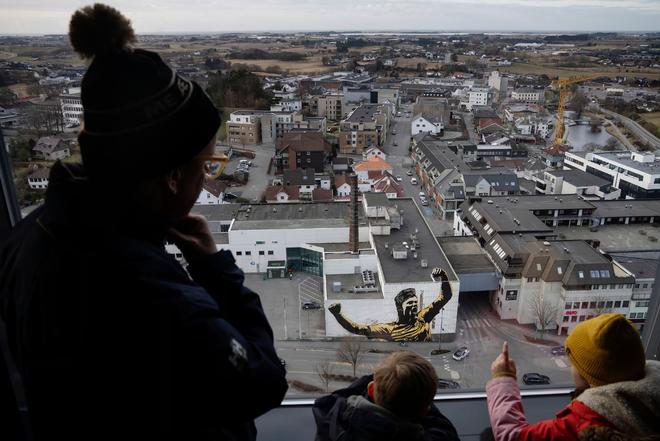 能带着欧内斯特和家里其他人去挪威最新的景点游玩,真是令人兴奋:这是一场“哈兰德之旅”。布吕讷俱乐部甚至安排我们入住当地耶伦酒店的“哈兰德套房”,客厅墙上的壁画描绘了埃尔林职业生涯的不同阶段,从那个留着浅色头发、为布吕讷踢球的男孩开始。我和妻子海莉带着孩子们从酒店出发,迎着北海的寒风,前往狂风呼啸的布布吕讷体育场,去见俱乐部的营销经理比约恩·哈格鲁普·勒肯,以及他在董事会任职、从事当地旅游业的兄弟弗罗德·哈格鲁普。和他们在一起的还有一些已经达到退休年龄的球迷,包括桑德维,他们自愿带领游客踏上这段“哈兰德之旅”,此外还会承担打扫体育场、为商店备货等其他任务。“我们了解这家俱乐部,”另一位球迷恩德里·雷夫斯内斯说,“而且我们热爱这家俱乐部。”今年夏天,停靠在斯塔万格的英国邮轮“爱奥娜号”上的游客有两个选择:一是参观挪威这片地区的自然奇观布道石,二是参加哈兰德之旅,游览破旧的足球场和其他景点,参与者需支付750挪威克朗(约为54英镑)。这个提供英语和挪威语服务的旅行项目,几年前只被视作一种娱乐活动,现在正逐渐成为将布吕讷这家球会乃至整个城镇推向世界的重要尝试。弗罗德说,拉斐尔·纳达尔的家乡马略卡岛和C罗的家乡马德拉岛都是他们很好的学习对象。