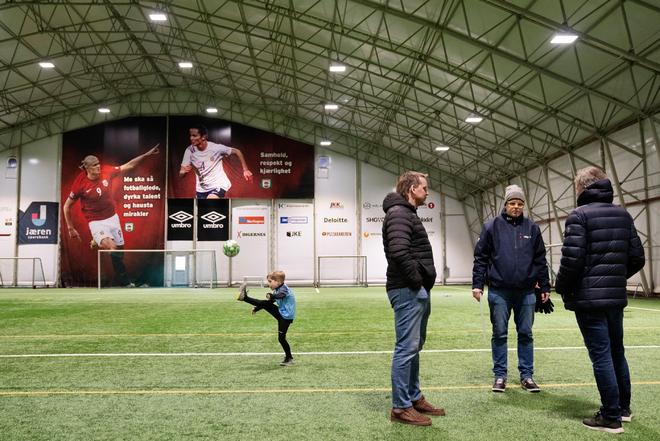 在我们离开耶尔哈伦之前,恩德尔指着哈兰德和效力于拜仁慕尼黑女子队的图瓦-汉森的大幅照片,旁边还有挪威语的说明:“我们将播撒足球的快乐,培育人才,收获奇迹。”这可能会让哈兰德听起来像一个异常巨大的获奖蔬菜。但这不仅仅是口号。俱乐部的理念与耶伦地区的农业特色相契合。在重型机械出现之前,人们只能用铁锹把布满岩石的山坡开垦成耕地。这是异常辛苦的体力活,每一锹下去都费尽全力。正是这种艰苦劳动,塑造了耶伦地区的文化内核——这是一个把勤奋和努力视为一切前提的地方。布吕讷队的体育场有一个区域,农民可以把拖拉机开进去观看比赛。2001年,在奥斯陆的杯赛决赛中对阵维京FK队时,挪威媒体报道了一支满载黄瓜、卷心菜和西兰花的拖拉机车队,如何在穿过首都游行、让首都变成红白海洋之前,将这些蔬菜分发给沿途遇到的人们。然而,球迷们在比赛中用羊铃制造可怕噪音的计划并未奏效,布吕讷以0比3落败。