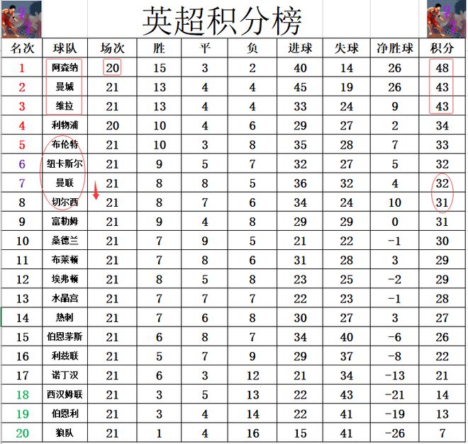 【资讯关键词】: 维拉 曼联 曼城 英超 阿森纳 伯恩利 利物浦 切尔西队 积分战报
