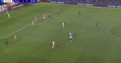 精彩时刻:第34分钟,德容直塞,费尔明小角度抽射破门,巴萨1比1布拉格斯拉维亚