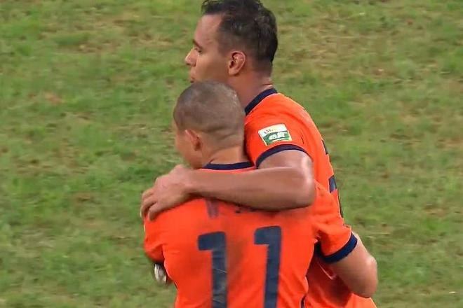 第60分钟,萨里奇右路任意球直接射门,王大雷单掌将球挡出。第80分钟,奥古斯托左路传中,李海龙罚球区中路蝎子摆尾助攻,兰克尔泽球门区左侧蹬过王大雷后倒地外脚背弹射远角得手。兰克尔泽打入夏转后的第4球,青岛海牛扳回一分,1-2!