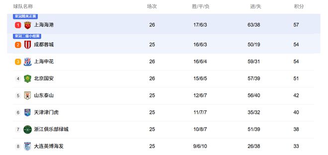 北京时间9月26日晚,中超第26轮比赛结束4场争冠大战,最终成都蓉城队客场3-3被浙江队绝平,海港队则主场3-2绝杀武汉三镇队,申花队主场6-1大胜梅州客家队,北京国安队主场4-2击退大连英博。随着这4场比赛结束,中超积分榜的争冠格局彻底被改写:2支争冠球队掉队,头号争冠热门已经浮现。
