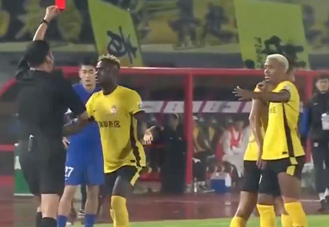 不过,慢镜头显示西海岸球员并未越位,边裁做出了非常低级的误判。随后,张呈栋忽然暴怒,追着边裁狂骂。主裁判随即跑了过来,制止张呈栋,并向其出示黄牌。被黄牌警告后,张呈栋依旧没有收敛,对着主裁和边裁一起骂。西海岸的外援阿齐兹连忙过来,想把张呈栋赶紧拉走。但是,他根本拉不走已经暴怒的张呈栋。在被张呈栋骂了好几句后,主裁判实在受不了了,直接向其出示红牌,将其罚出场外。