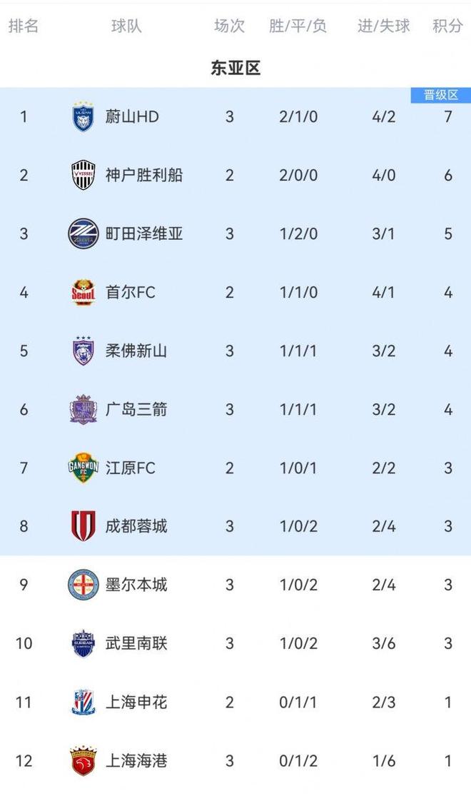 上半场,双方拼得非常激烈,但均未打破场上僵局,直到下半场第72分钟,乔希奇打入一球,帮助武里南联1-0先下一城,面对主场一球落后的局面,墨尔本城开始疯狂反扑。第84分钟,比伊奇助攻拉沙尼破门,帮助墨尔本城1-1扳平比分,随后第97分钟,阿特金森助攻卡普托完成压哨绝杀,帮助墨尔本城2-1实现逆转。蔚山HDVS广岛三箭 两队从未在亚冠上交锋过,本场比赛蔚山HD坐镇主场,开场第12分钟,李镇贤助攻金珉赫打入一球,帮助蔚山HD一球领先,广岛三箭疯狂反扑,到了上半场结束依然无法扳平比分。下半场,广岛三箭继续加强进攻,依然无法破门,最终客场一球惜败。最新积分榜如下: