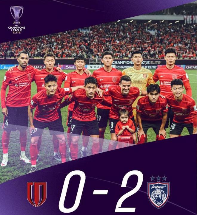 上半场结束,上海海港暂时两球落后,只有1次射门没有打正,没有创造破门良机,门将做出6次扑救,町田泽维亚11次射门7次打正,创造4次绝佳机会把握住2次。下半场,上海海港继续被町田泽维亚压制,先是张琳芃门前解围,后是相马勇纪破门被吹越位,最终还是0-2倒下。稍早时候结束的一场比赛,成都蓉城主场面对马来西亚球队柔佛新山,最终0-2爆出大冷门,首次亚冠主场输球且首次亚冠比赛被零封。 全场比赛,成都蓉城大面积轮换阵容情况下,在进攻端遭到了压制,上半场只有1次射门,下半场3次射门1次打正,最终一球未进,反观柔佛新山完成14次射门6次打正,创造2次破门良机,最后打进两球,取得新赛季亚冠首场胜利。