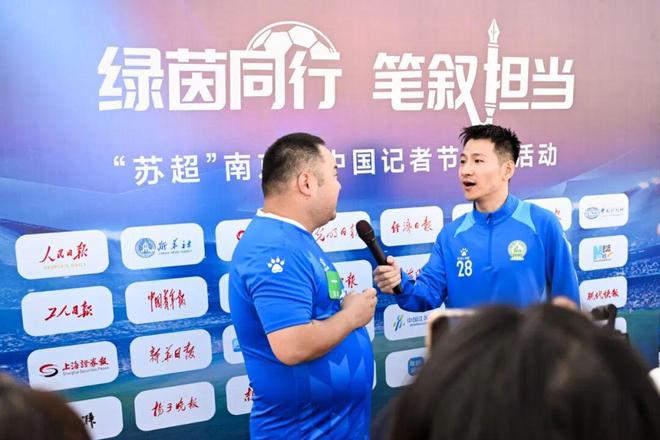 当媒体记者穿上球衣和杨笑天、戈伟、滕帅一起打比赛会擦出什么样的火花?当李加俊拿起话筒反向采访媒体人又会问出什么样的问题?11月5日下午“绿茵同行 笔叙担当”苏超南京队中国记者节特别活动在位于江北新区的南京市体育训练中心热闹开启苏超球员与媒体记者们一起展开了一场别开生面的互动球员们一登场,现场秒变大型追星现场,平时在镜头后冷静记录的记者们,也忍不住化身“球迷”,排队要签名、求合影的气氛热烈又欢乐。