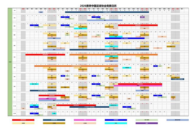 公告中表示:U-23国家男子足球队将参加2026亚足联U23亚洲杯和2026亚运会。2026亚运会将于9月20日至10月4日期间进行,但依据惯例,亚运会足球项目会提前开赛,为保障U-23国家男子足球队集训备战,联赛于9月6日后休赛。U-17国家男子足球队将备战参加5月在沙特举行的U17亚洲杯。(完)附件:2026赛季中国足球协会竞赛日历