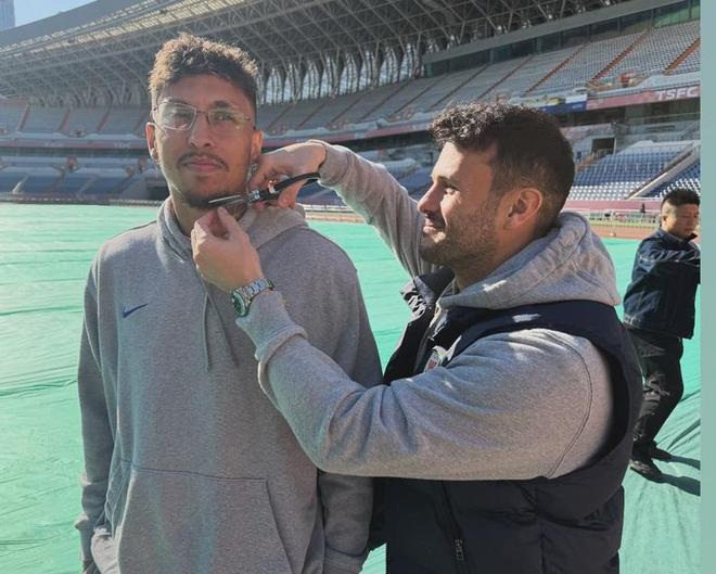11月19日下午,山东泰山队举行了本赛季最后一个球迷开放日活动,大约一百多名球迷齐聚基地为球队加油打气。外援和本土球员意气风发,看上去状态调整得不错。 瓦科在社媒上分享了自己用剪刀剪克雷桑胡子的照片。瓦科2024年初加盟泰山,与克雷桑合作两个赛季,二人相处和谐。