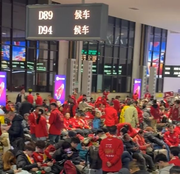 北京国安玄学加持罕见:河南球迷震撼出征,大量聚集在候车厅